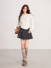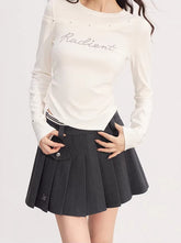 This knit top is crafted from a soft, skin-friendly blend with gentle elasticity for comfortable winter layering. The metallic-inspired letter motif pairs with matching hardware details to create a clean yet distinctive visual focus. Its asymmetric hemline adds character while flattering the overall proportions and subtly elongating the figure. The versatile silhouette makes it easy to pair with denim, skirts, or outerwear for daily styling.