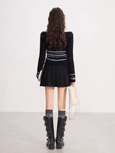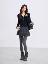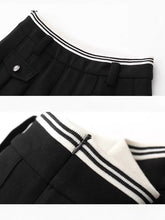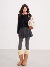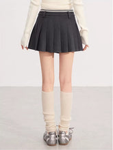 This pleated skirt features a classic A-line silhouette with a contrast elastic waistband that subtly highlights the waistline while adding a collegiate-inspired touch. The structured yet soft blended fabric creates crisp pleats that maintain shape without stiffness, offering a flattering and easy-to-style look. Its high-waisted design visually elongates the legs, making it versatile for everyday outfits, knit tops, or layered seasonal styling.