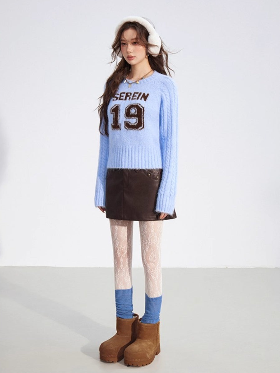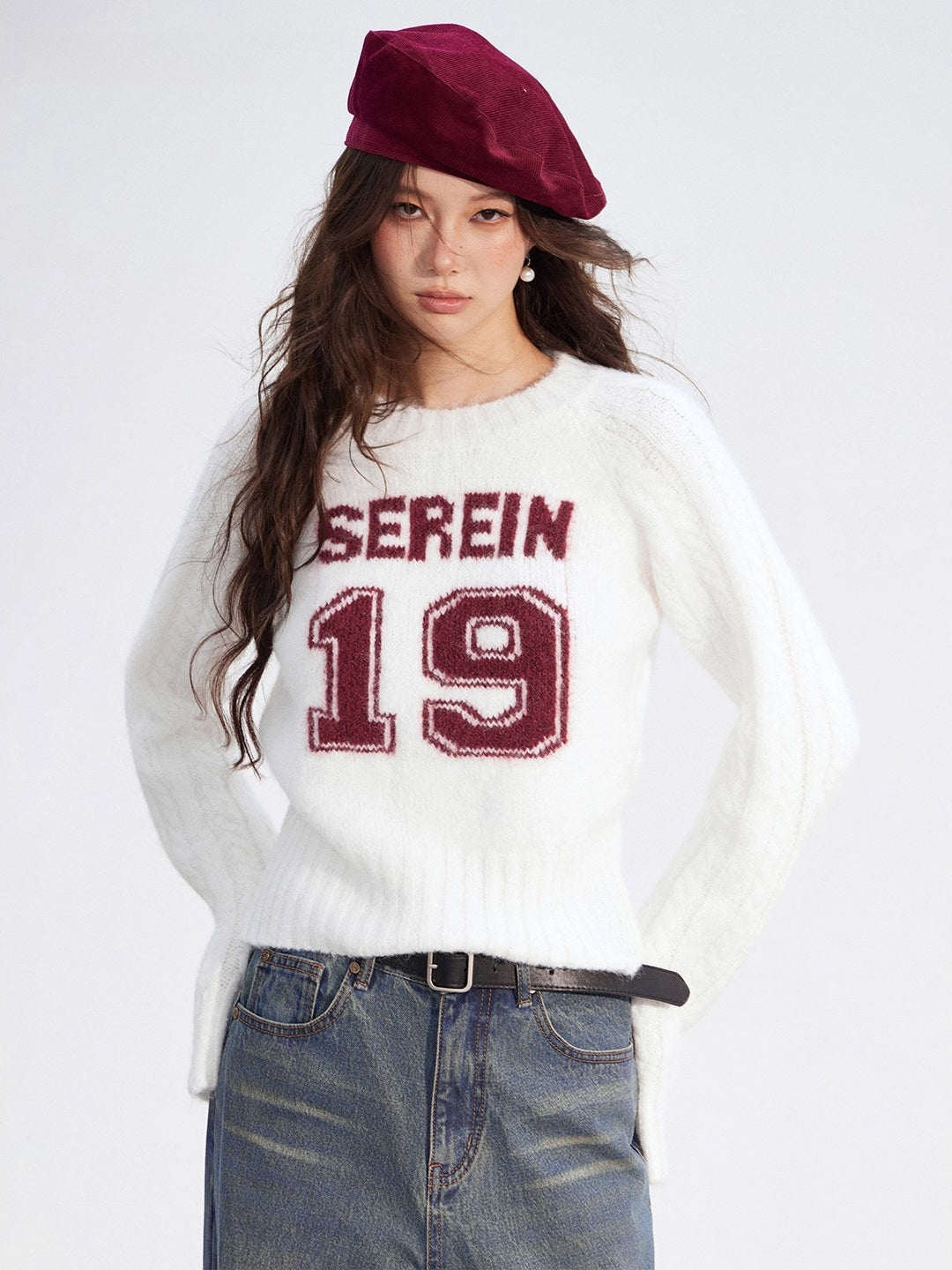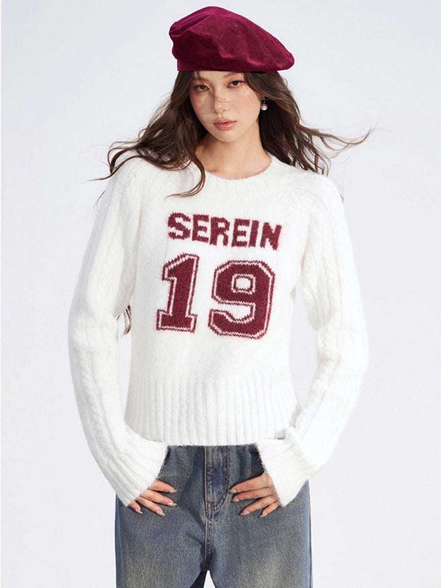 A soft and cozy sweater knitted from a premium wool-blend yarn, designed for ultimate warmth and comfort. The drop-shoulder silhouette and contrasting letter pattern add a touch of vintage charm while maintaining a clean, minimalist look. The dense cable texture gives a plush hand feel and refined drape, perfect for pairing with any fall or winter outfit.