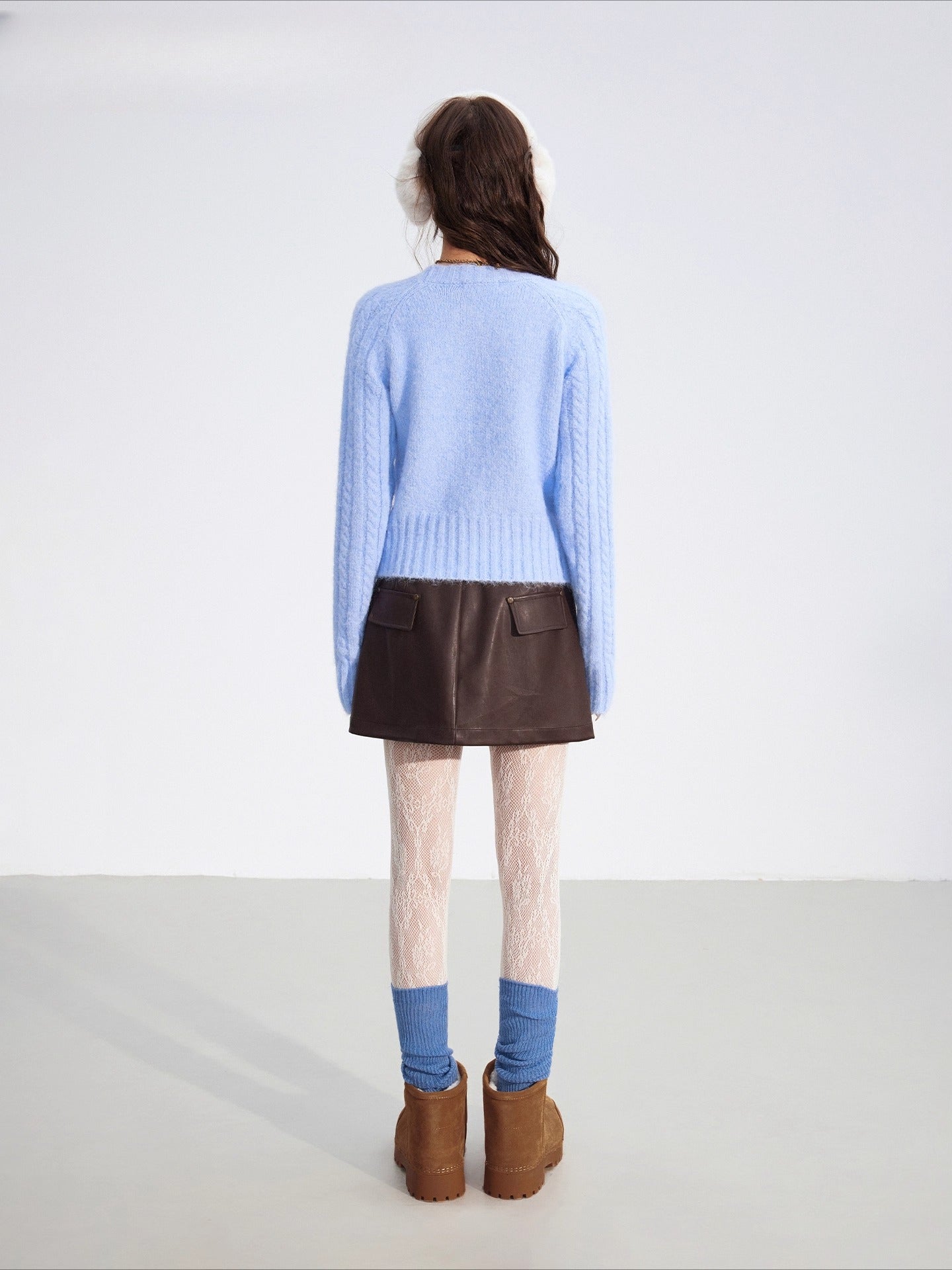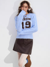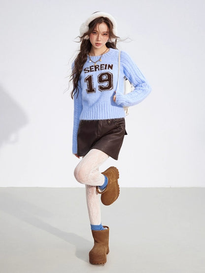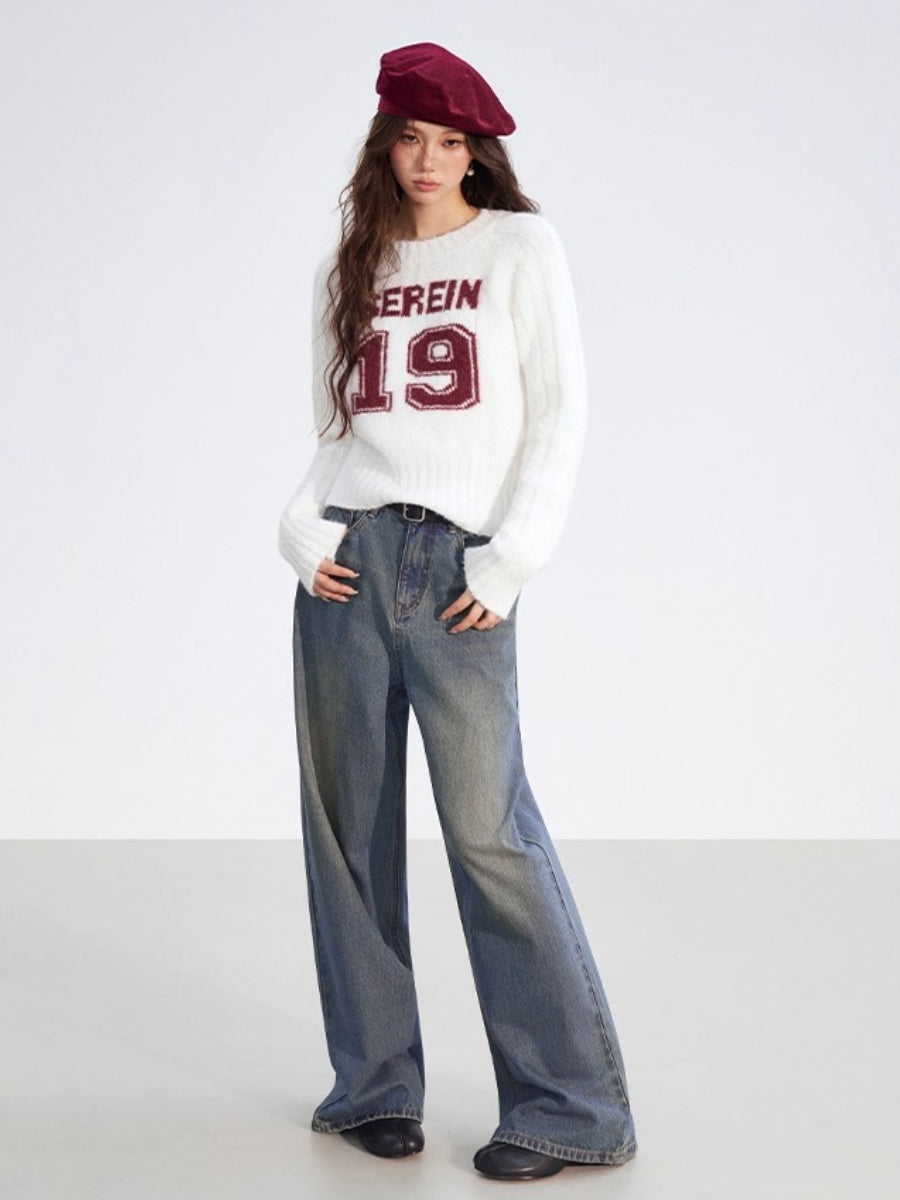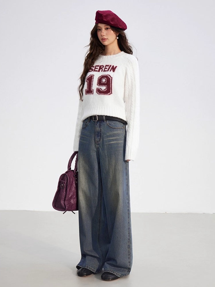 A soft and cozy sweater knitted from a premium wool-blend yarn, designed for ultimate warmth and comfort. The drop-shoulder silhouette and contrasting letter pattern add a touch of vintage charm while maintaining a clean, minimalist look. The dense cable texture gives a plush hand feel and refined drape, perfect for pairing with any fall or winter outfit.