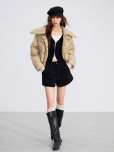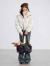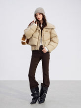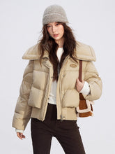 Short puffer silhouette crafted from a smooth, durable shell with a plush knit-panel collar that frames the face. The oversized lapel and mixed-knit trim add structure and warmth while keeping the body compact and balanced. Mid-weight fill with 90% white duck down delivers cozy insulation without bulk; elasticated hem gives a neat, adjustable fit. Pair it with denim for daytime or layer over a knit dress for a sharper look.