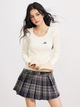 A versatile autumn/winter wool-blend pleated skirt with a flattering high-waist A-line cut. Designed to slim the waist and elongate the legs, finished with single-side button accents for a touch of retro charm.