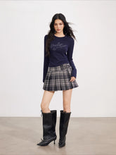 Product Name: Plaid & Brown Wool Pleated Mini Skirt