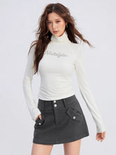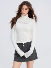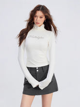 A soft, close-fitting base layer designed with a refined high-neck silhouette for warmth and wind resistance. The delicate fleece texture feels smooth and comfortable against the skin, offering both stretch and shape retention. Subtle rhinestone lettering adds a touch of understated sparkle, making it ideal for layering or wearing solo. Available in both turtleneck and crewneck styles to suit different looks.