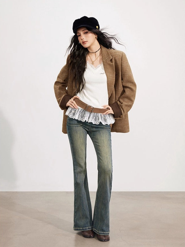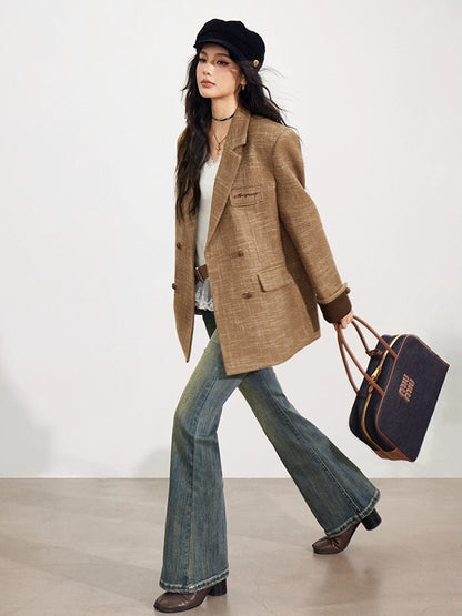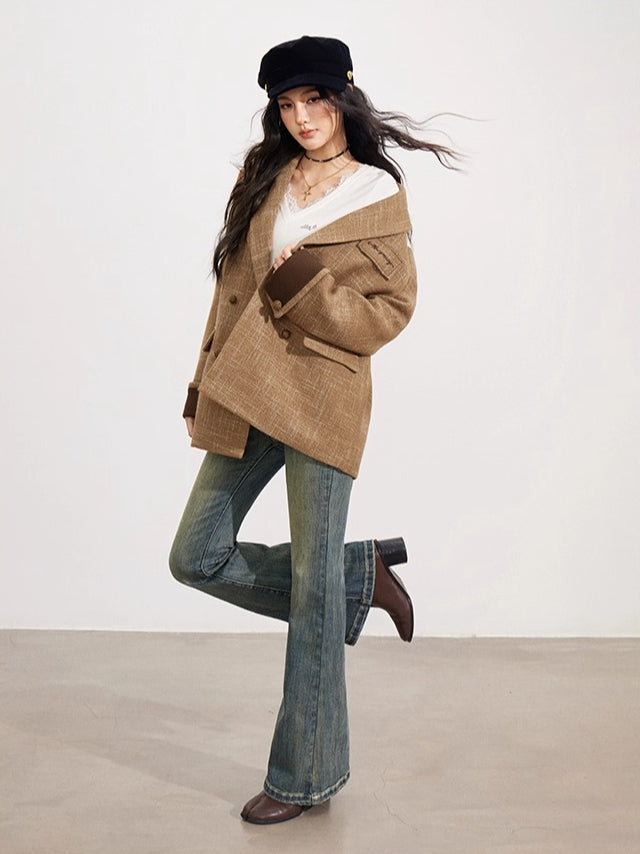 - Coffee brown tone with contrast cuff details adds simplicity and sophistication.