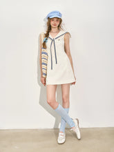 Product Name: Navy Collar Color-Blocking Waist-cinching Dress