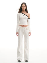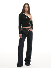 Asymmetrical Shoulder Slim-Fit Long-Sleeve Top