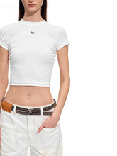 This slim-fit short-sleeve T-shirt is made from premium cotton-spandex rib fabric, offering a smooth, breathable, and stretchy texture. The round neckline and clean shoulder line highlight a flattering silhouette, while the embroidered NAWS logo adds a refined touch. Soft and resilient, it provides comfort for everyday wear while maintaining shape and structure after multiple washes.