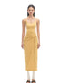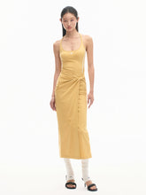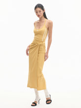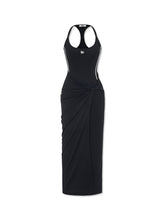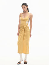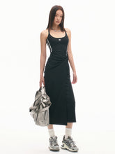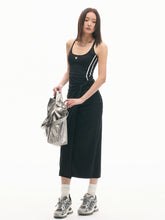 This mid-length dress features a sporty yet elegant look with color-block stripes. The twisted design at the waist enhances waist-to-hip ratio and creates a slimming effect. Perfect for casual wear and leisure.