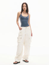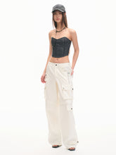 Product Name: Loose-Fit Multi-Pocket White Casual Pants