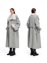 This mid-length coat features premium high-support wool blend fabric for warmth and structure. The soft shearling collar adds textural contrast and a cozy winter touch. Its belted waist enhances the silhouette while the double-collar design offers versatile styling. Refined tailoring and rich texture make it both elegant and practical for cold seasons.