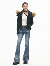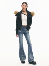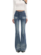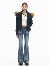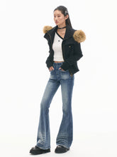 The jeans are designed with enzyme wash and horsehair dyeing for a slimming visual effect. Features handcrafted 3D cat whiskers with a natural and layered look. Includes custom YKK zippers for a smooth and durable finish.