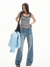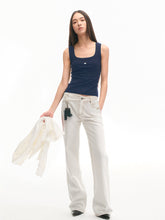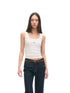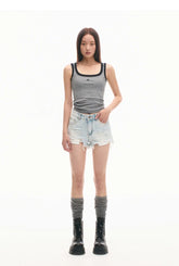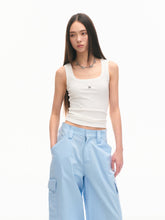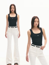 The product features wide strap design, a large neckline for a more tailored fit, and a finer, more intricate fabric with three-needle and five-thread stitching for a clean finish. The fabric is smooth and the edges are well-secured to prevent unraveling.