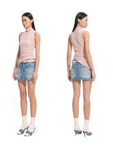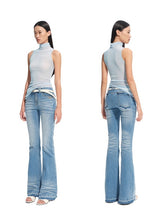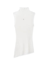 Semi-high neckline design with natural drape, enhancing elegance and highlighting shoulder-neck lines. Asymmetrical hemline shapes the waist with volume and layering, creating a refined and versatile look.