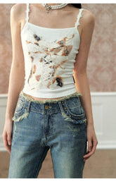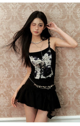 Off-white & Black Lace Splice Camisole