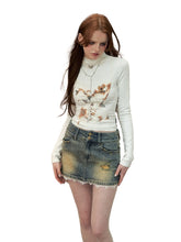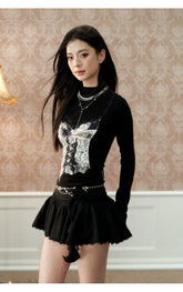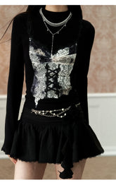 Off-white & Black Lace Splice Mock Neck T-shirt