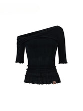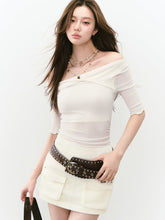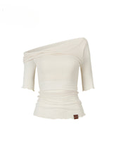 One-Shoulder Acetate Mid-Sleeve T-shirt