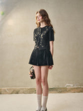 Product Details: Vintage versatile round-neck cardigan with a special floral-patterned placket, buttons are hand-sewn covered buttons, highlighting delicacy and design.