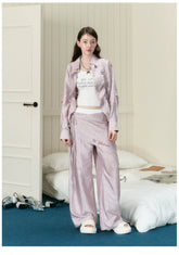 VIA PITTI,Pink Striped Wide-Leg Pants