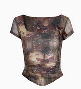 This cropped tee features tonal plaid weave elements and a dimensional butterfly-knot at the neckline for rich detail. Its slim, cropped cut boldly showcases the waistline’s beauty and pairs perfectly with a skirt to create personalized curve appeal.