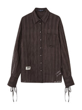 This jacket is a shirt - style outerwear with a plaid pattern and sheer mesh fabric.