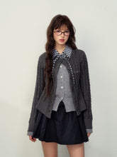 This preppy-inspired knit sweater features a layered two-piece design, combining timeless style with modern elegance. The round neckline and loose silhouette offer a flattering and comfortable fit, while the textured cable-knit fabric adds warmth and sophistication. Versatile and stylish, this sweater is ideal for autumn and winter layering.
