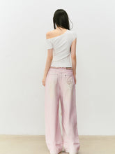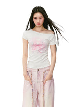 Printed Rhinestone Asymmetric Shoulder T-shirt