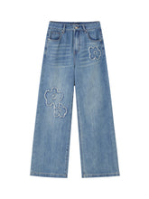 Product Name: Raw-edge Flower-Patch Straight-leg Jeans