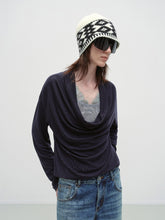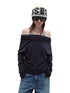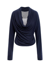 This long-sleeve top is crafted from a soft wool-blend knit combined with delicate lace panels for subtle texture contrast. The faux two-piece construction features a draped neckline that can be styled as a straight or off-shoulder silhouette. A slim yet flexible fit enhances layering versatility while maintaining a refined profile. Designed for autumn wear, it pairs easily with high-waist bottoms or tailored skirts for everyday styling.