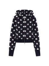 This two-piece casual set features a cropped zip-up hoodie with an attached hood and relaxed wide-leg sweatpants for effortless everyday wear. Crafted from pure cotton, the fabric feels soft, breathable, and comfortable against the skin. Playful star prints add a youthful accent, while the adjustable zip front allows flexible styling and layering. Designed for lounging or casual outings, the set balances comfort and a laid-back silhouette with ease.