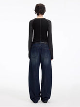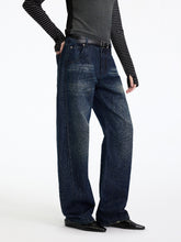 Crafted from breathable 100% cotton denim, these vintage-washed jeans feature a sculpted panel construction with subtle curved seam detailing that enhances structure and shape. The mid-low rise waist is balanced by a relaxed straight silhouette, offering a naturally slimming effect while maintaining everyday comfort. Designed for fall and winter wear, the clean yet worn-in wash pairs effortlessly with knits, jackets, or fitted tops, making it a versatile staple for casual styling.