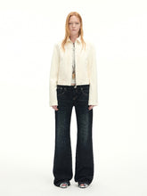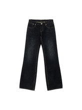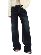 Crafted from durable cotton denim with a vintage wash finish, these straight-leg jeans feature classic whisker fading for a naturally worn-in look. The low-rise silhouette is balanced with a relaxed, sculpted cut that elongates the leg while maintaining a clean structure. Designed for effortless everyday styling, the wide straight shape pairs easily with knits, sweatshirts, or fitted tops, while reinforced seams ensure long-lasting wear.