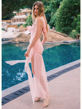 Chiffon Floral-print Halter Neck Backless Irregular Dress