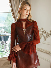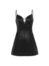 This stylish A-line dress features eco-friendly PU leather with a chic design that includes custom metal rings for a fashionable touch. The dress is designed to offer a flattering silhouette, with adjustable straps for a perfect fit. Ideal for casual or semi-formal occasions, its sleek look can be paired with various accessories to elevate your ensemble.