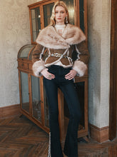 This chic short coat is made from high-quality sheepskin, offering both warmth and style. The oversized collar adds a bold, fashionable touch, while the glossy fur finish ensures a sleek and luxurious look. The tailored fit and structured design make it perfect for both casual and semi-formal occasions, providing comfort and elegance.