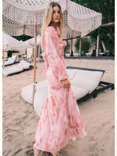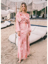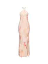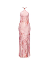 Net Fabric Halter Neck Backless High Slit Floral Print Dress
