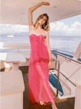 Elastic mesh creates a light and draping feel, lace outlines delicate textures, and sequins add shining details