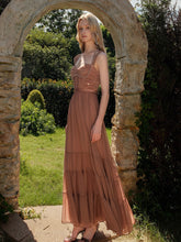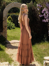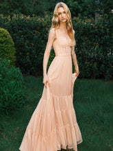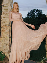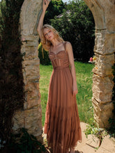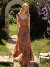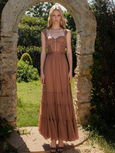 This exquisite chiffon mesh dress features delicate pleating and beaded crochet details that enhance its flowing, ethereal silhouette. The halter neck design creates an elegant, flattering neckline, while the umbrella skirt shape offers a graceful, voluminous finish. Perfect for evening events or formal gatherings, this dress exudes sophistication and charm.