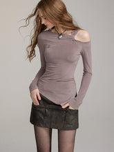 Shoulder Cutout Asymmetric Fitted T-shirt