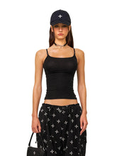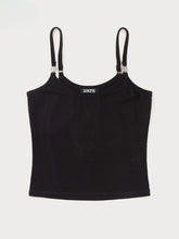 A sports camisole designed by SMFK in 2023 with a waist - cinching silhouette. It features a circular cross - flower metal shoulder strap buckle, and the back shoulder straps are adjustable in length.