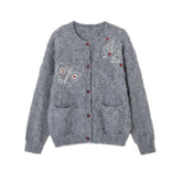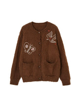This cardigan features delicate bird and butterfly motifs, blending whimsical embroidery with a relaxed silhouette. Made from a cozy fiber blend, it offers both warmth and breathability, while the button-down design ensures versatile styling. The playful yet elegant details make this piece an ideal layering option for adding charm and individuality to everyday outfits.