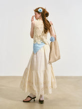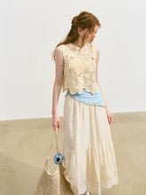This vest features a hollow - out lucky - flower crochet design. The upper fabric is 100% Acrylic, the lower fabric is 100% Cotton, and the lining is 100% Polyester.