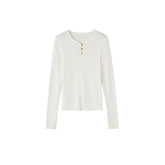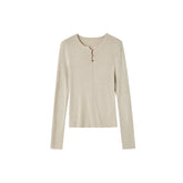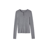 Soft stretch rib knit offers a cozy handfeel and clean drape. Subtle linear texture and a neat button front create a slim, layered-look base that styles easily with denim, skirts, or under blazers for campus and travel. The relaxed-fit shoulders and smooth sleeves keep it comfortable for all-day wear.