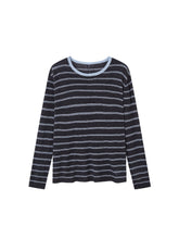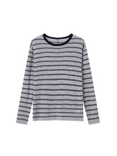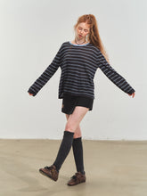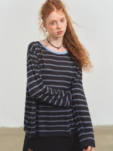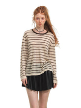 Vintage-inspired striped knit blouse with a versatile design, relaxed silhouette, and comfortable textured fabric for casual everyday wear.