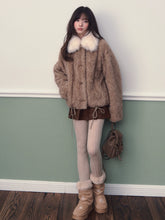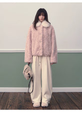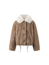 This stylish faux fur coat features a distinctive color-block design, crafted from soft and plush faux wool for maximum warmth. The contrast-colored collar and cuffs add a unique touch to the overall design, giving it a chic and modern feel. Its oversized fit and luxurious feel make it a perfect piece for casual and semi-formal outings during the colder months.
