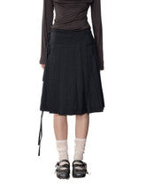 Product Name: Dark Grey Tie-Waist Pleated Midi Skirt