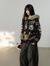 Loose-fit outerwear blending vintage Fair Isle patterns with a detachable fur collar and classic toggle closures. Cozy yet refined, with delicate detailing and a warm winter aesthetic inspired by traditional collegiate style.