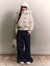 Fabric Composition: Shell: 31% Polyester, 59% Wool, 10% Acrylic; Lining: 100% Polyester; Filling: 90% White Duck Down, 10% Feathers