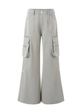Designed in a low-rise cut to elongate body proportions, these wide-leg trousers balance volume with flow. Tailored micro-flare silhouette with bold stitched seams and functional oversized patch pockets enhance a utility-inspired look. Contrast webbing belt adds versatility, while reinforced stitching details deliver durability with a Korean casual edge. Finished in vintage green tones for a refined industrial aesthetic.