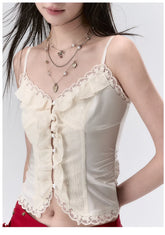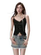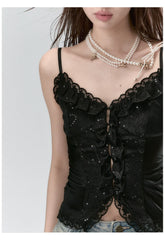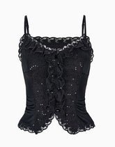 Product Name: Sparkly Lace Ruffled Edge Tank Top